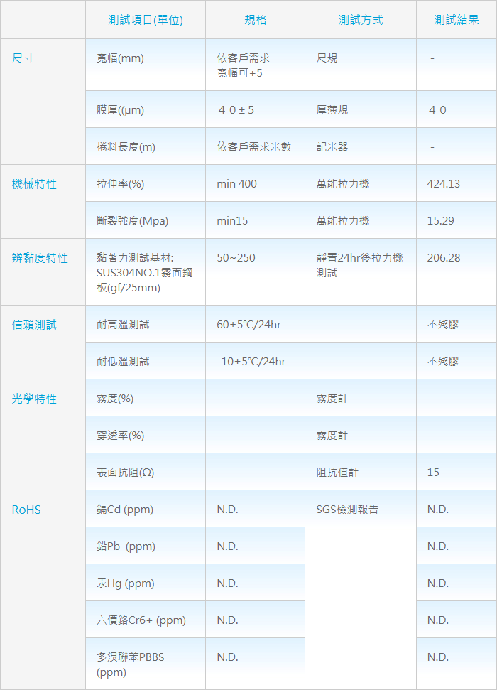 4.欲知產品進一步詳情或寬幅、捲長方面問題,可向本公司查詢。